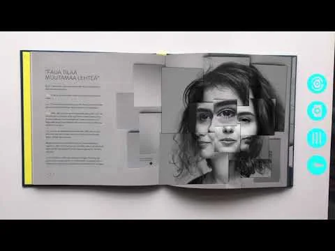 I created the concept and designed AR content to Mediakirja book. The idea of the book was to mix different media concepts. One of the media elements is the AR content, where the photo collages wake up to life trough the mobile phone screen.